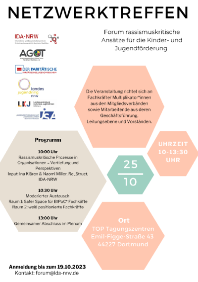 Die Anmeldung zur Veranstaltung ist bis zum 19.10. möglich. Anmeldung bitte über folgende Mail: forum@ida-nrw.de.