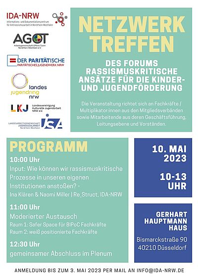 Die Anmeldung zur Veranstaltung ist bis zum 03.05. möglich. Anmeldung bitte über folgende Mail: info@ida-nrw.de.